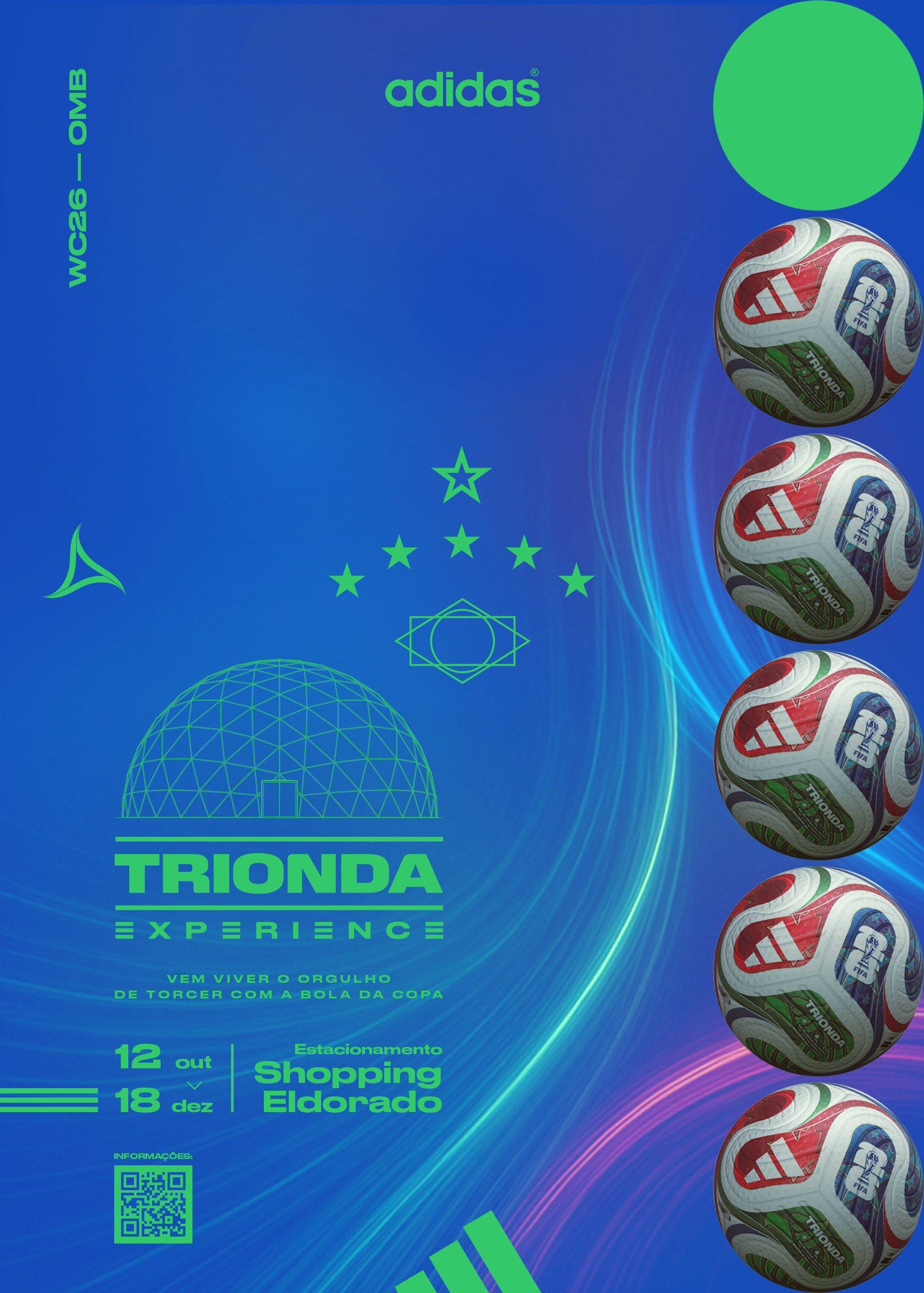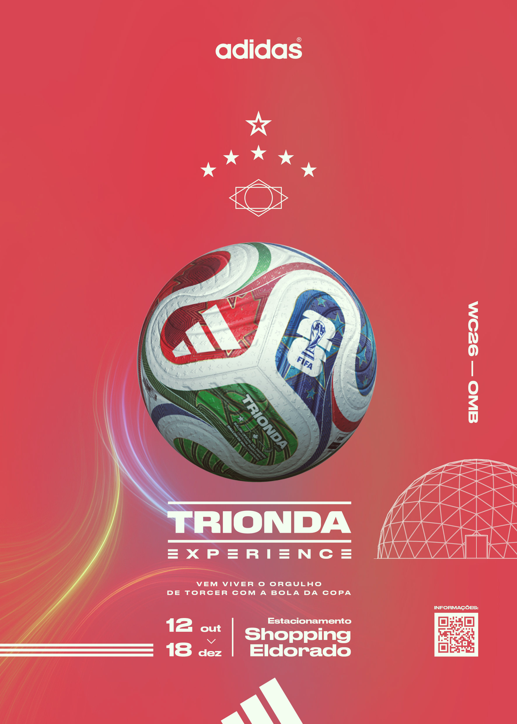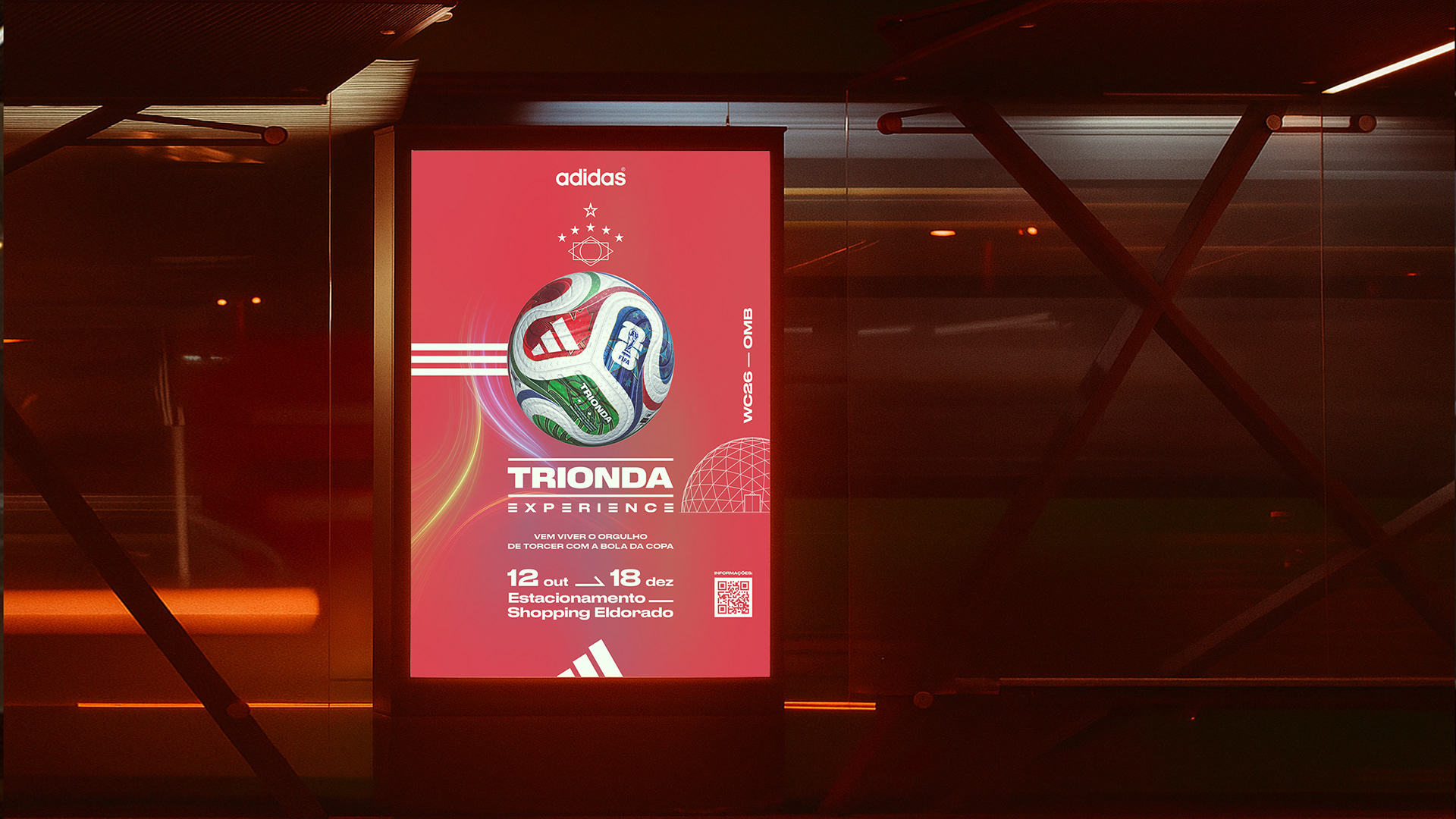 Trionda Experience é uma ativação imersiva e grandiosa que acontece dentro de um domo no formato da própria bola da Copa do Mundo de 2026, a adidas Trionda.
